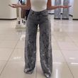 Y2K Lace Flowers Hollow Jeans Fashion High Waist Straight Wide Leg Pants Solid Color Trousers Women's Clothing Black 3XL