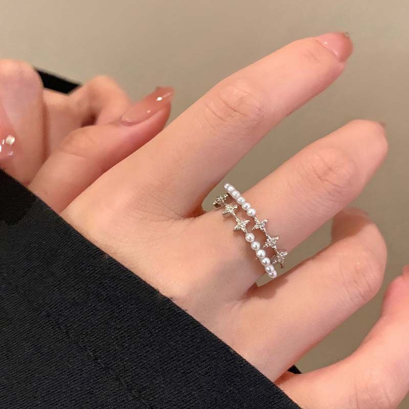 Y2K Pink Crystal Heart Star Rings for Women Girls Sparkling Zircon Love Open Adjustable Finger Ring Bride Wedding Jewelry Gifts