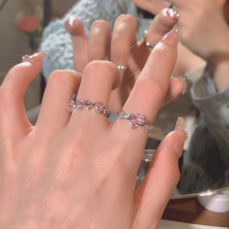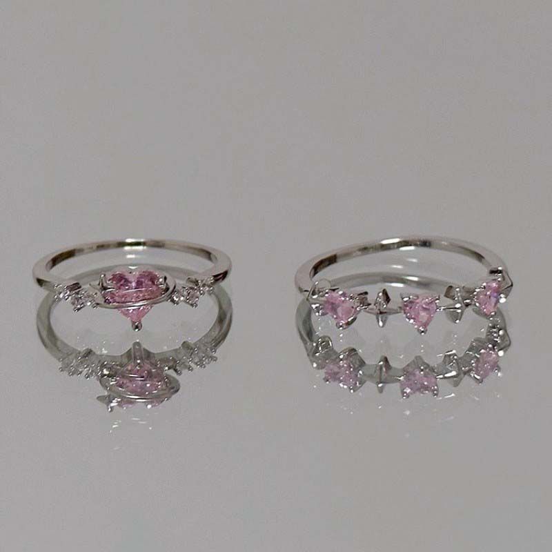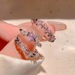 Y2K Pink Crystal Heart Star Rings for Women Girls Sparkling Zircon Love Open Adjustable Finger Ring Bride Wedding Jewelry Gifts