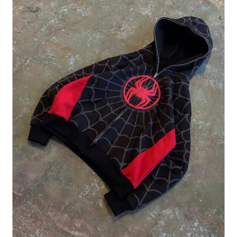 Y2k Retro Gothic America Spider Foaming 3d Print Hoodies Fashion Oversized Loose Full Zipper Hoodie Men Jacket Street Sweatshirt
