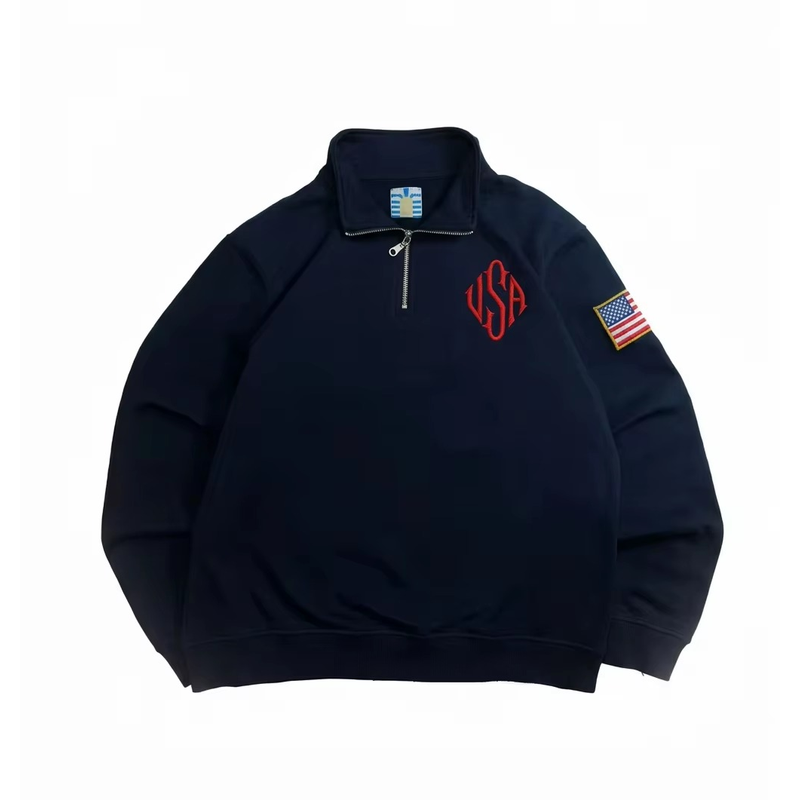 Y2K Retro Quarterzip Pullover Hoodie Embroidery Sweatshirt American Vintage Old Money Casual Streetwear Unisex Oversized Coat