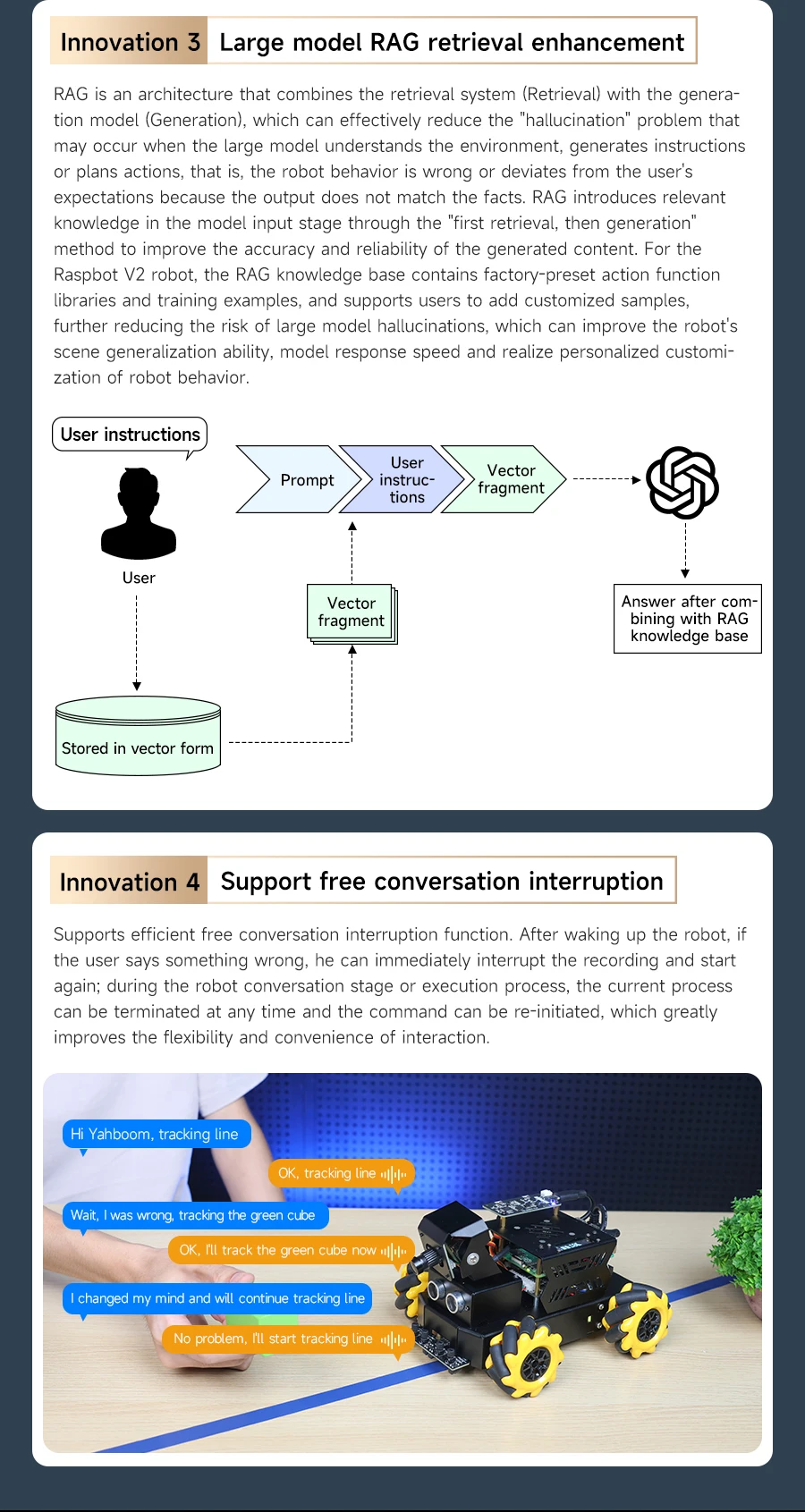 2. Integrating multimodal interaction capabilities, including text, image, and voice, it can adjust actions in real time based on environmental changes, supporting free conversation interruptions and dynamic feedback reasoning.