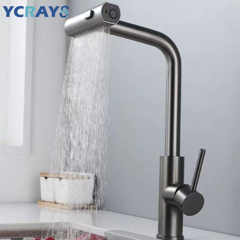 YCRAYS Black Kitchen Faucets Gray Pull Out Rotation Waterfall Stream Sprayer Head Sink Mixer Brushed Nickle Water Tap Accessorie