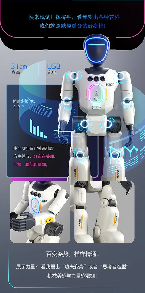 Yearoo Interactive Bionic Robot Gesture Remote Control Programmable Ai Sensing Singing Dancing Early Learning Kids Companion Toy