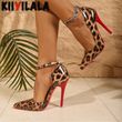 Yellow Leopard Print 12cm High Heels Women's Stiletto Heels 1cm Belt Buckle Sexy Party Pumps Ladies Dress Shoes Plus Size 35-46