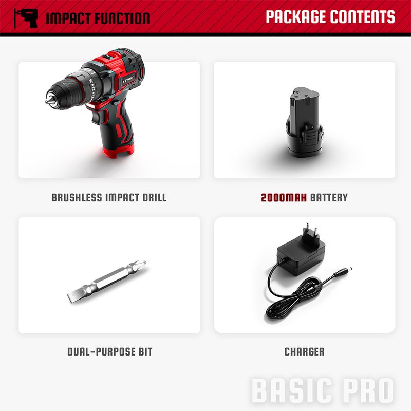 YEVOLT 12V Brushless Electric Cordless Drill Driver 2-Speed Electric Drill Compact Power Drill for Home DIY & Woodworking