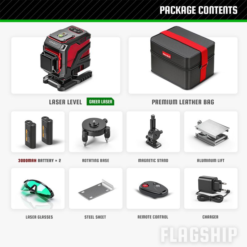 YEVOLT Green Laser Level 3/4-Plane 12/16-Line Self-leveling 360 3D/4D Horizontal & Vertical Power Measuring Tool YVGLL4XS-Series