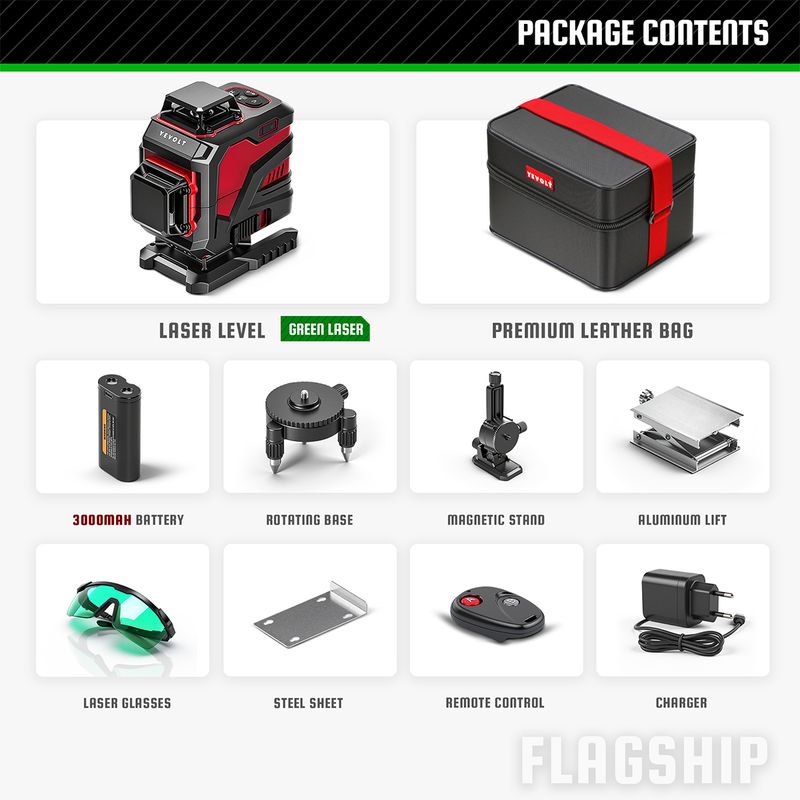 YEVOLT Green Laser Level 3/4-Plane 12/16-Line Self-leveling 360 3D/4D Horizontal & Vertical Power Measuring Tool YVGLL4XS-Series