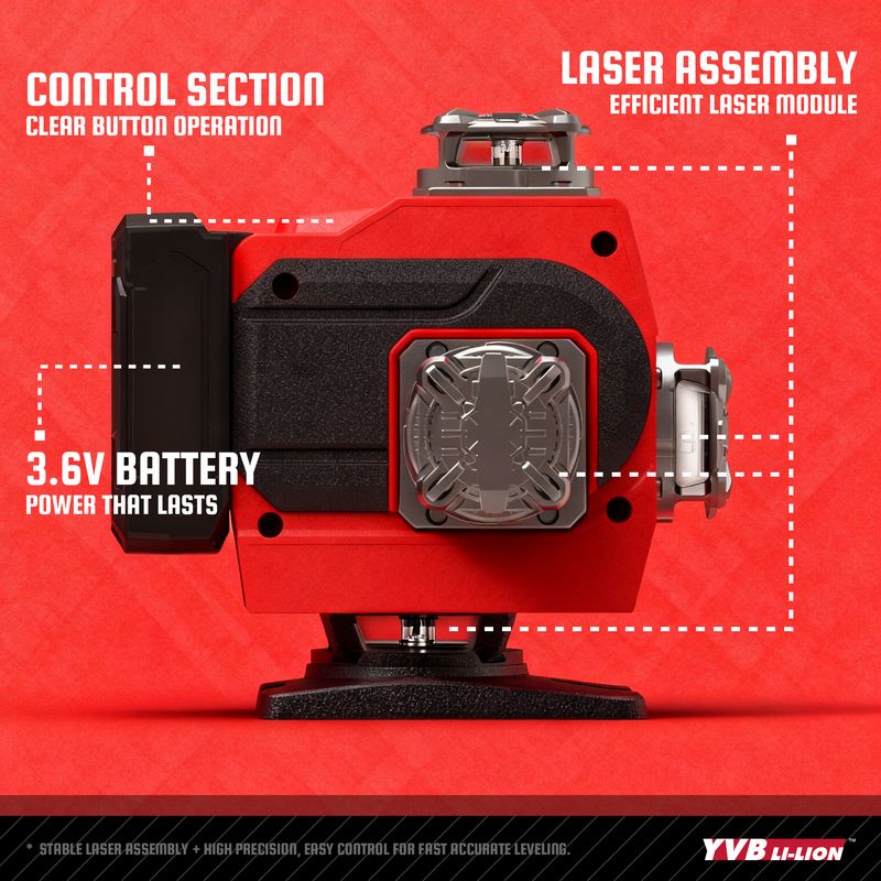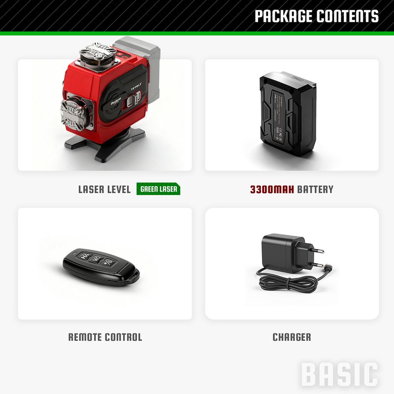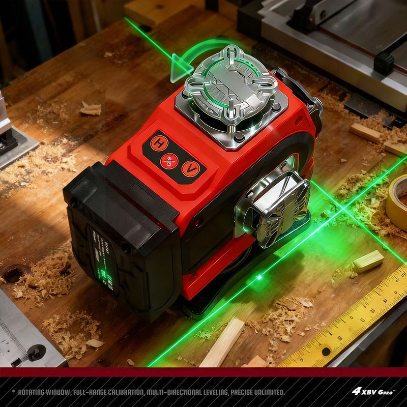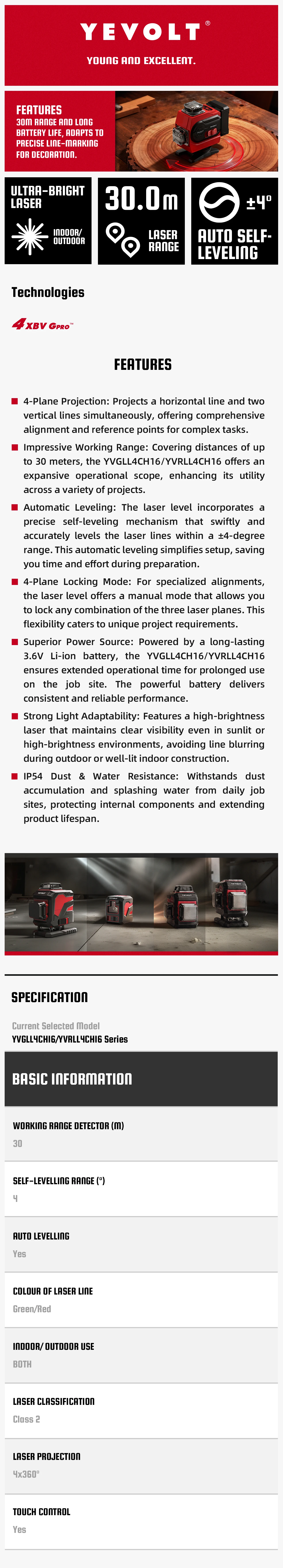 YEVOLT Green Laser Level YVGLL4CH16-Series 4-Plane 16-Line Self-leveling 360 4D Power Tools Measuring Tool Tripod