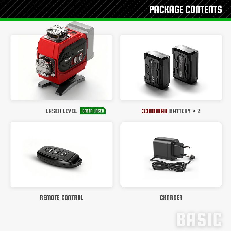 YEVOLT Green Laser Level YVGLL4CH16-Series 4-Plane 16-Line Self-leveling 360 4D Power Tools Measuring Tool Tripod