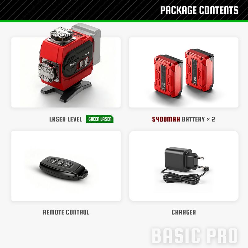 YEVOLT Green Laser Level YVGLL4CH16-Series 4-Plane 16-Line Self-leveling 360 4D Power Tools Measuring Tool Tripod