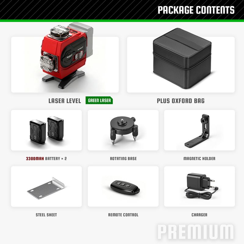 YEVOLT Green Laser Level YVGLL4CH16-Series 4-Plane 16-Line Self-leveling 360 4D Power Tools Measuring Tool Tripod