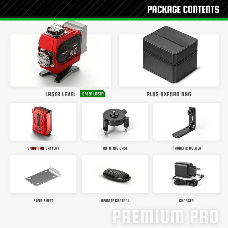 YEVOLT Green Laser Level YVGLL4CH16-Series 4-Plane 16-Line Self-leveling 360 4D Power Tools Measuring Tool Tripod