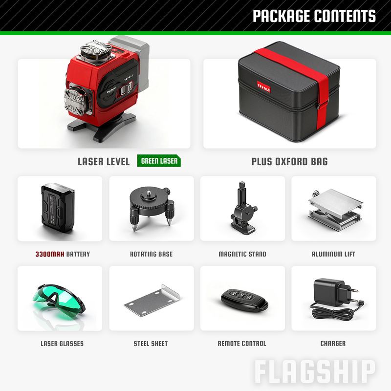 YEVOLT Green Laser Level YVGLL4CH16-Series 4-Plane 16-Line Self-leveling 360 4D Power Tools Measuring Tool Tripod