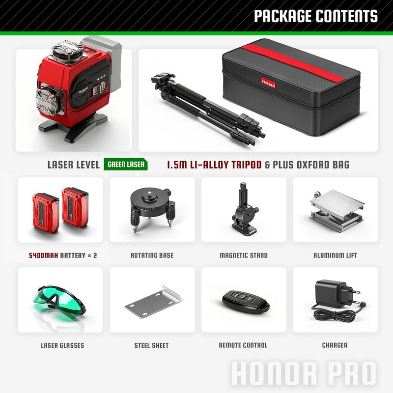 YEVOLT Green Laser Level YVGLL4CH16-Series 4-Plane 16-Line Self-leveling 360 4D Power Tools Measuring Tool Tripod