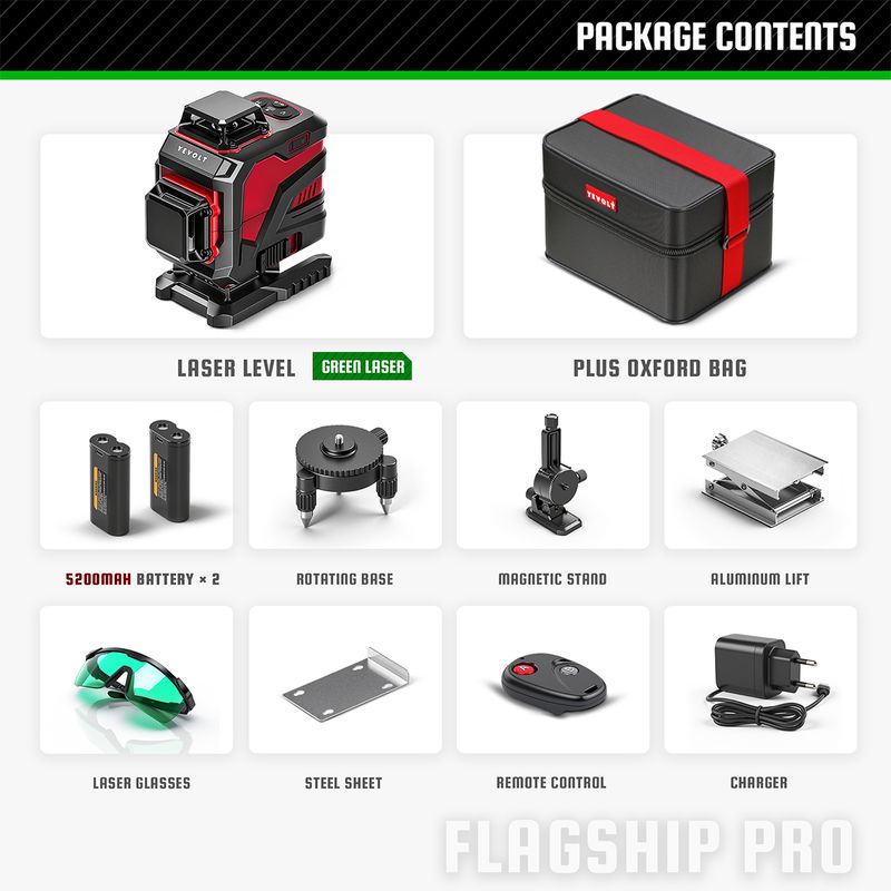 YEVOLT Laser Level YVGLL4XS-Series Green 12/16-Line 3/4-Plane Self-leveling 360 3D/4D Horizontal&Vertical Line Measuring Tool
