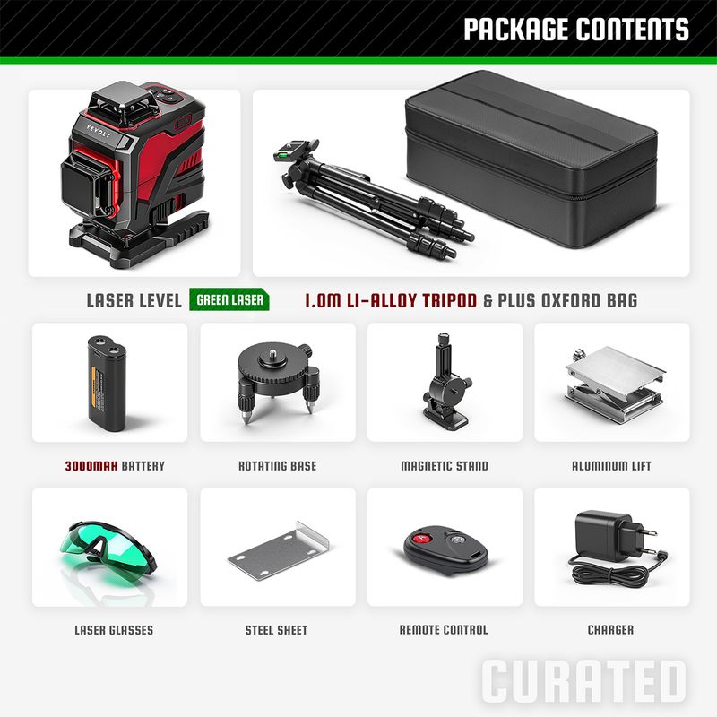 YEVOLT Laser Level YVGLL4XS-Series Green 12/16-Line 3/4-Plane Self-leveling 360 3D/4D Horizontal&Vertical Line Measuring Tool