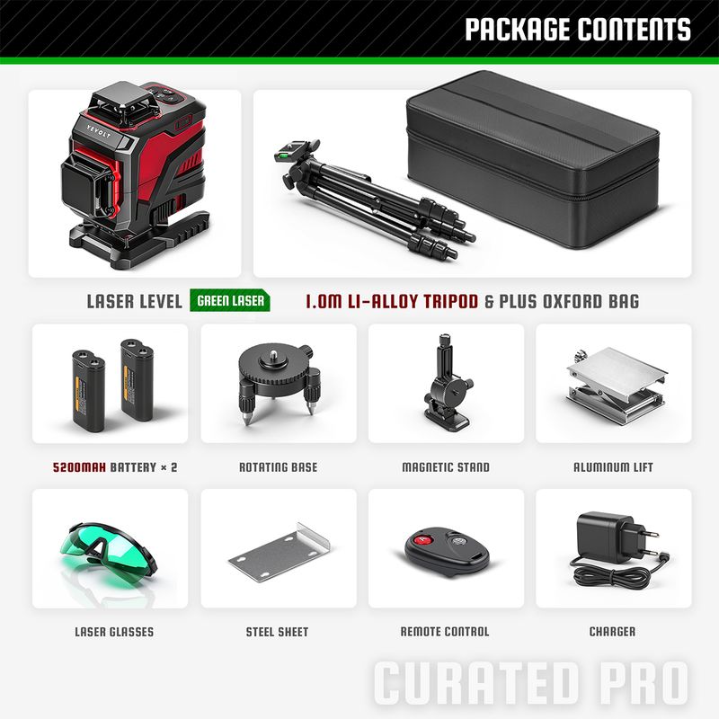 YEVOLT Laser Level YVGLL4XS-Series Green 12/16-Line 3/4-Plane Self-leveling 360 3D/4D Horizontal&Vertical Line Measuring Tool