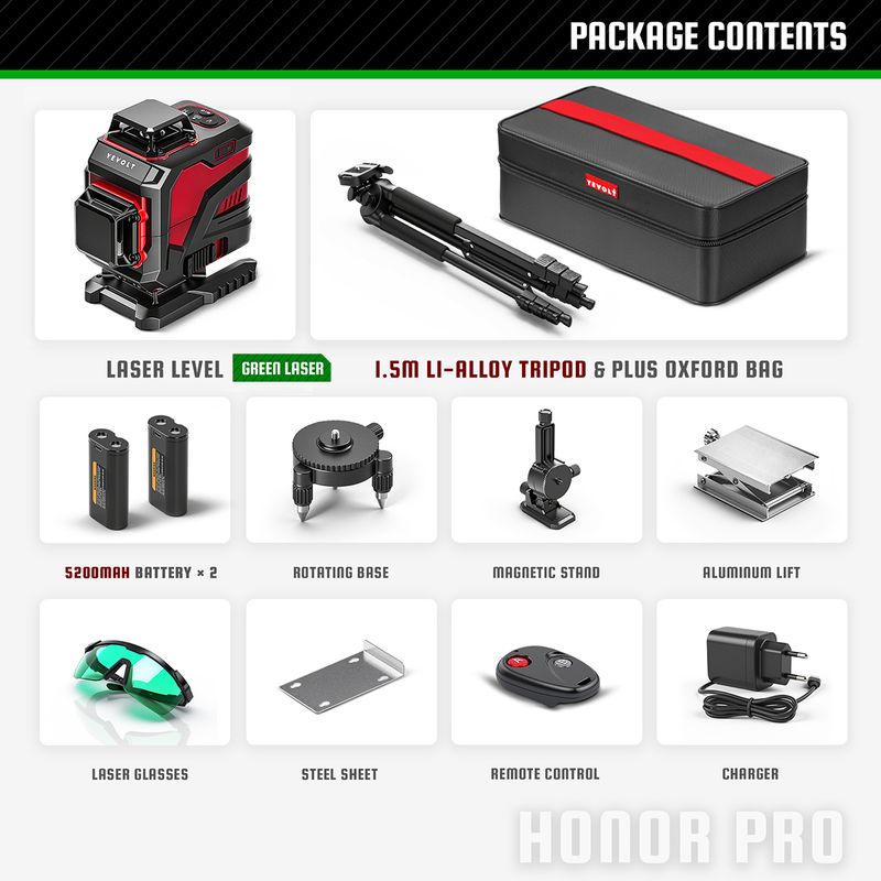 YEVOLT Laser Level YVGLL4XS-Series Green 12/16-Line 3/4-Plane Self-leveling 360 3D/4D Horizontal&Vertical Line Measuring Tool
