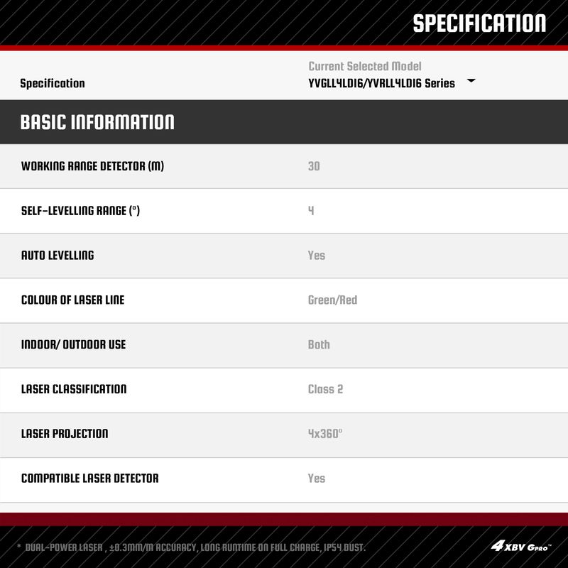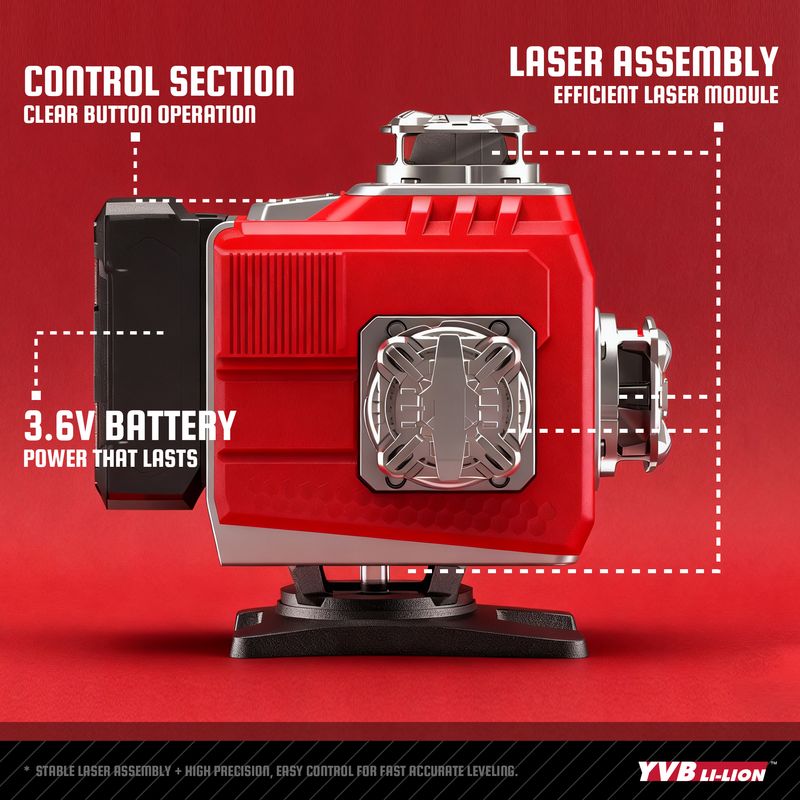 YEVOLT YVGLL4LD16 4-Plane Red Laser Level 4D 16 Lines with All Day Work Self-Leveling Measuring Horizontal & Vertical Tools