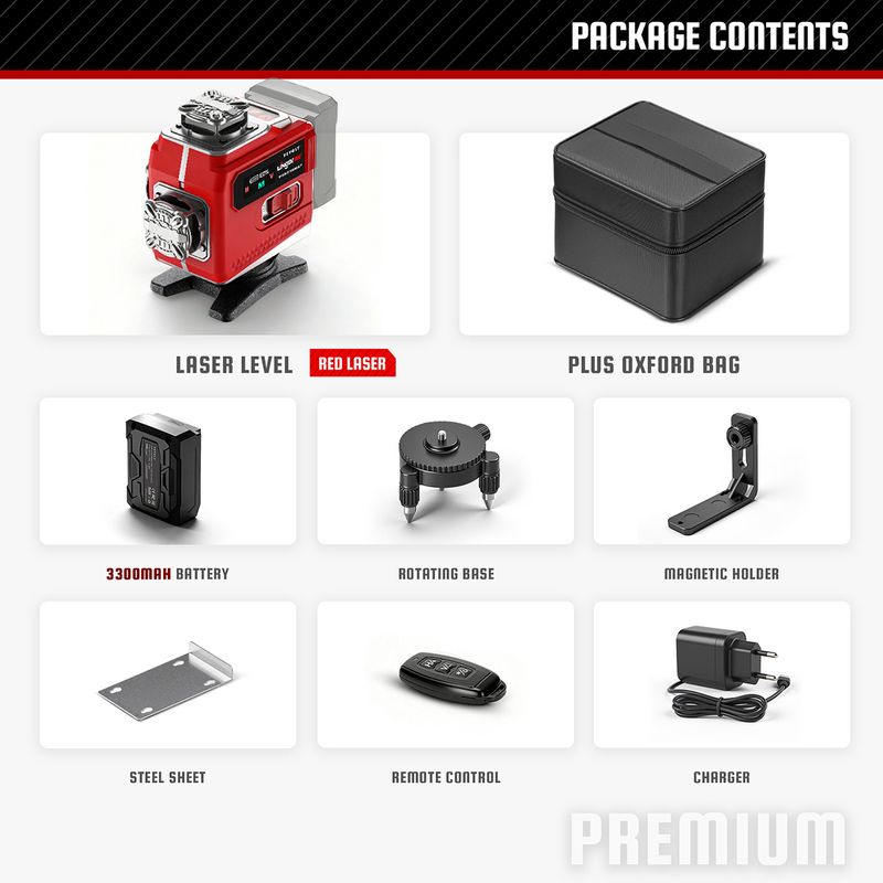 YEVOLT YVGLL4LD16 4-Plane Red Laser Level 4D 16 Lines with All Day Work Self-Leveling Measuring Horizontal & Vertical Tools