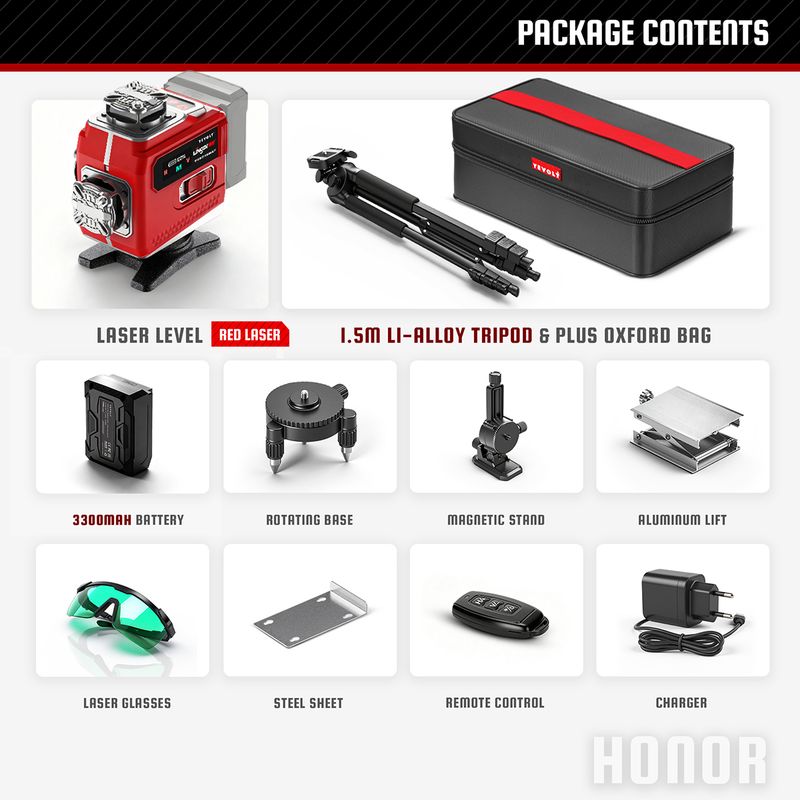 YEVOLT YVGLL4LD16 4-Plane Red Laser Level 4D 16 Lines with All Day Work Self-Leveling Measuring Horizontal & Vertical Tools