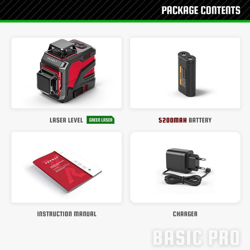 YEVOLT YVGLL4XS12 3-Plane 12-Line Plumb & Level Laser Level Auto-Leveling Hybrid Charge Dual-Power High Precision 30m Long Range