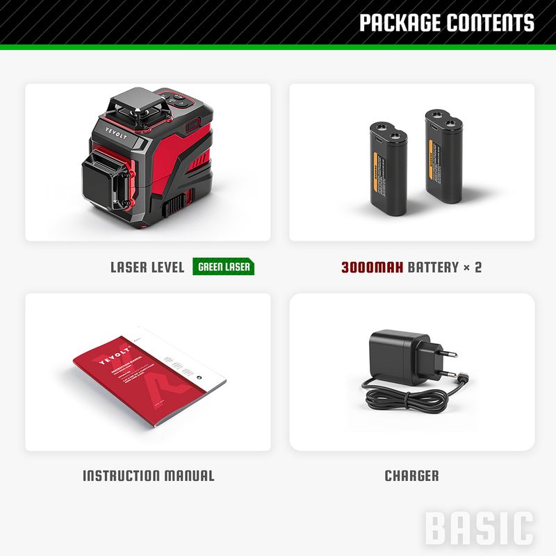 YEVOLT YVGLL4XS12 Laser Level 12-Line Green Beam ±0.2mm/m Precision, IP54 Dust/Water Resistance, Auto-Leveling & Slope Mode​