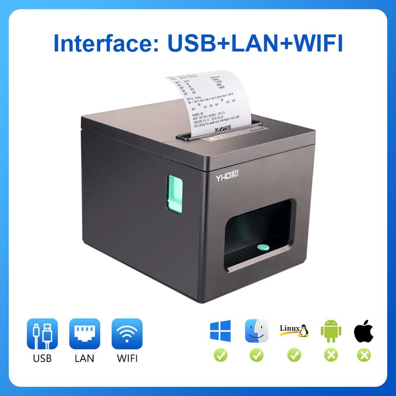 YHD-8390 Thermal Printer,80mm USB/USB+LAN/USB+BT/USB+BT+LAN+WIFI/USB+WIFI ESC/POS Printer, Compatible with Windows/Linux/MAC OS