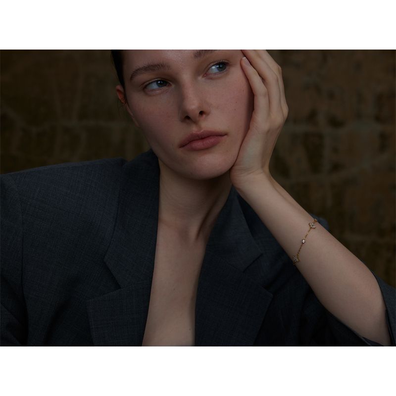 Yhpup Delicate Cubic Zirconia Flower Chain Thin Bracelet Bangle Stainless Steel Rust Proof Office Ladies Chic Jewelry New Gift