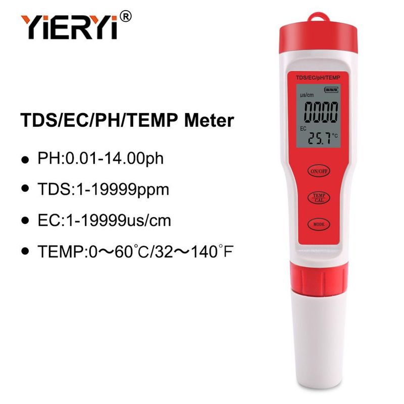 yieryi New TDS PH Meter PH/TDS/EC/Temperature Meter Digital Water Quality Monitor Tester for Pools, Drinking Water, Aquariums