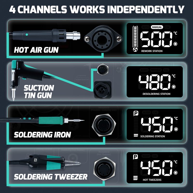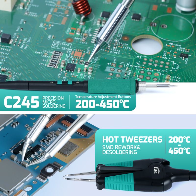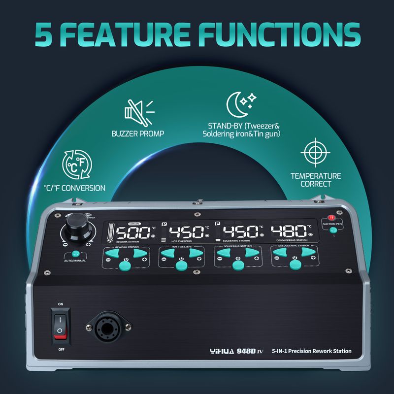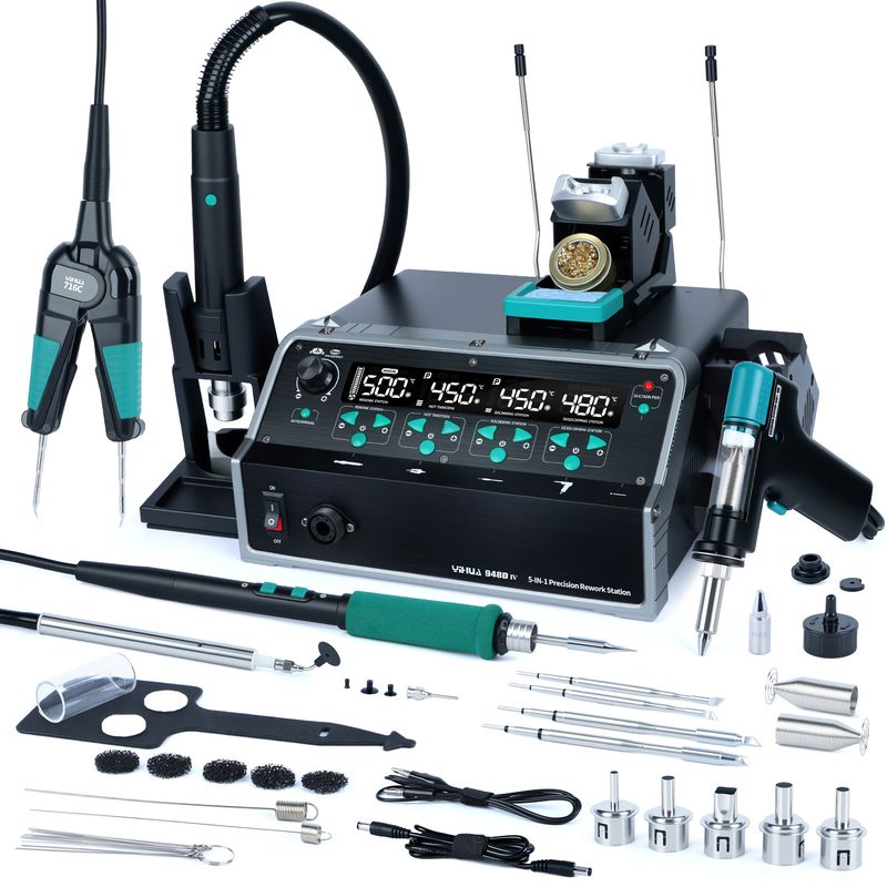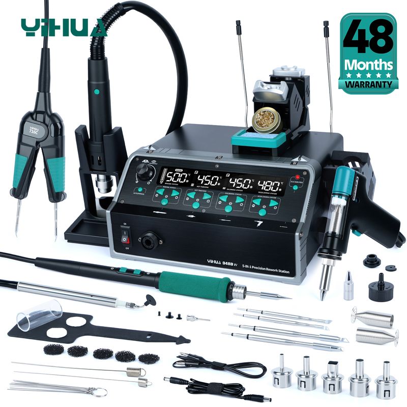 YIHUA 5-IN-1 1410W Welding Station Tin Suction Sucker 245 Soldering Iron Hot Air Gun Rework IC Pick Pen Remover Desoldering Tool