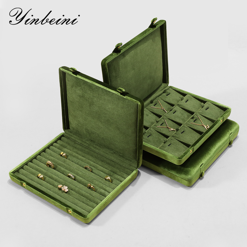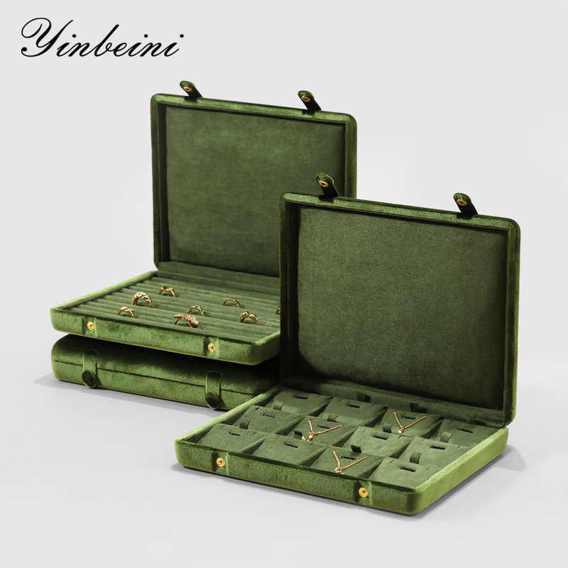 Yinbeini Velvet Jewelry Storage Case Ring Earring Pendant Display Organizer Large Space Packing Box for Collection XB006