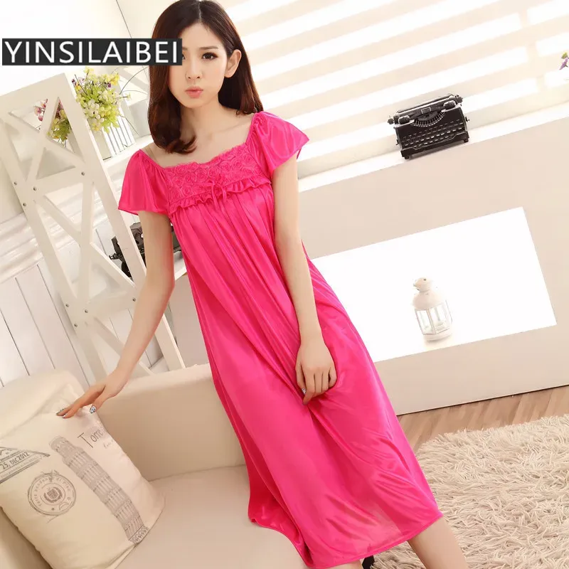YINSILAIBEI Rose Women's Sexy Sleepwear Plus Size Ice Silk Satin Night Dress Nightgown Female Lingerie Dress Sexy Nightwear