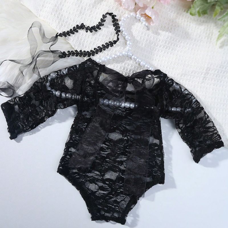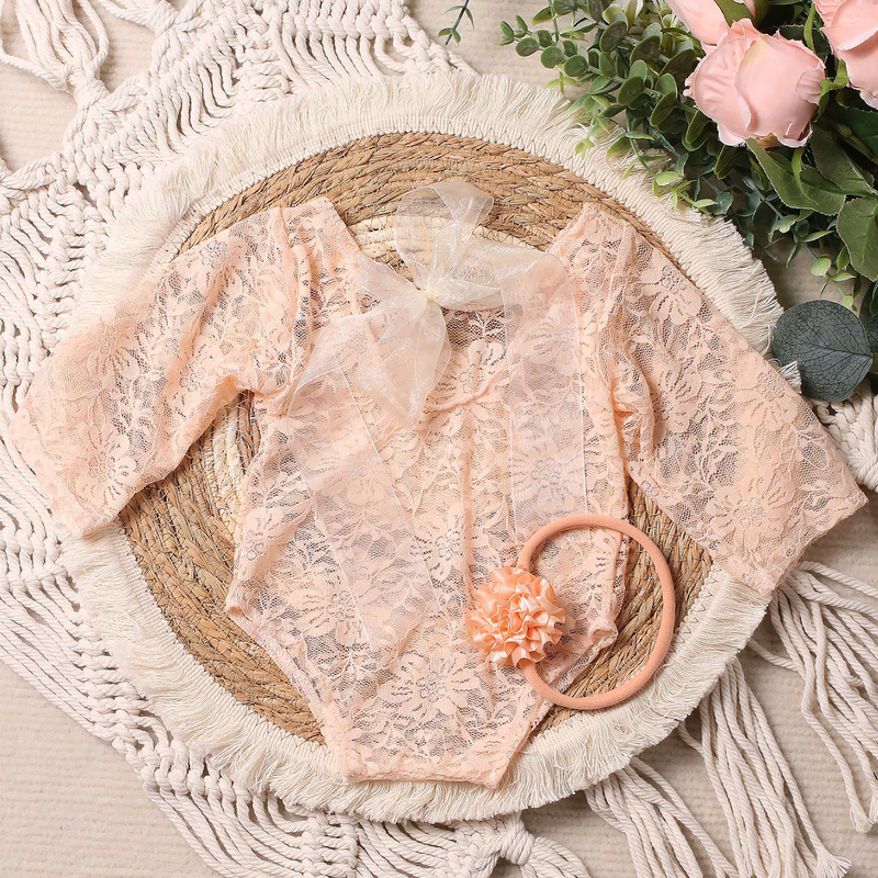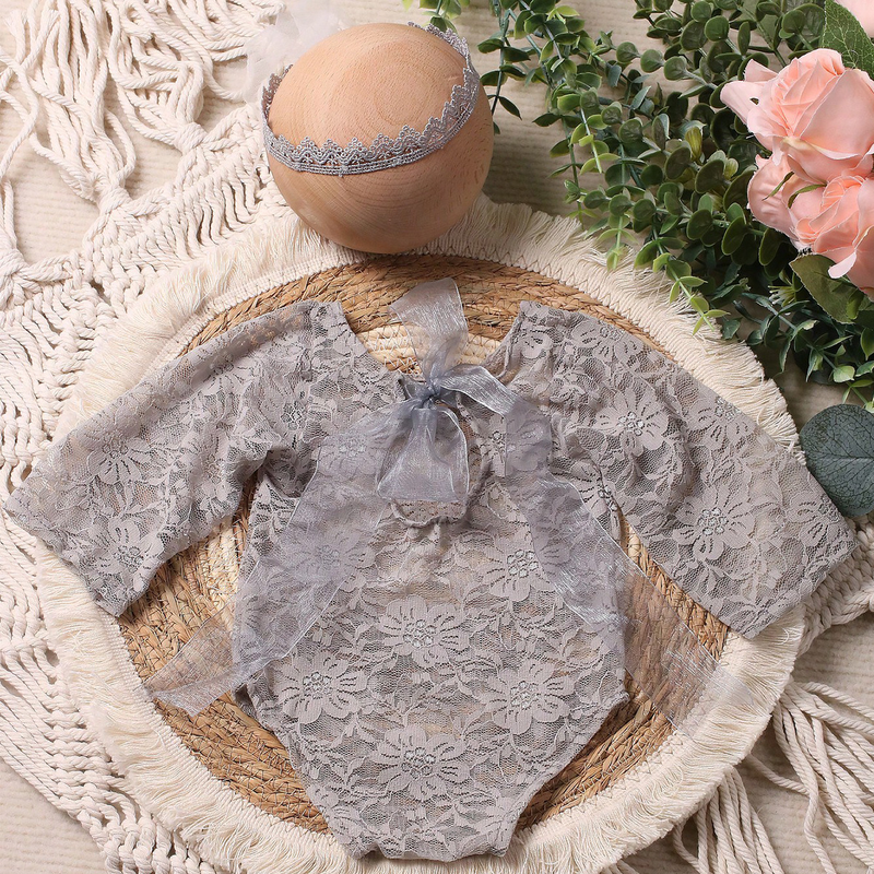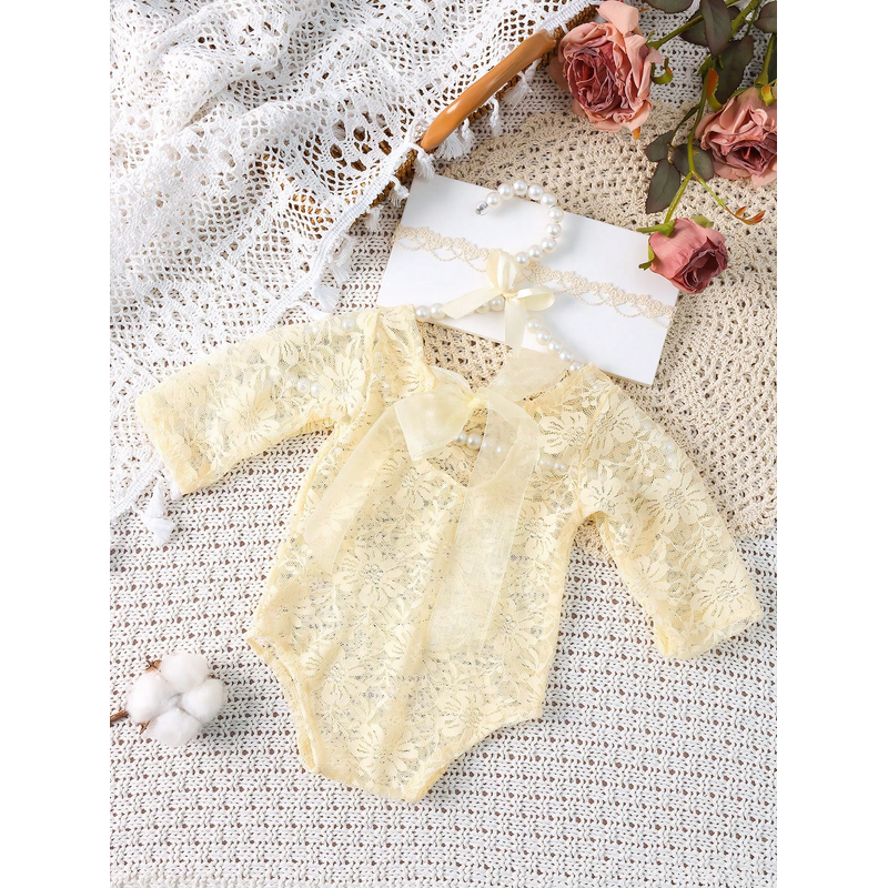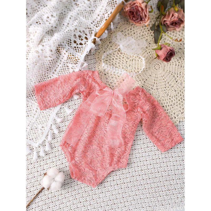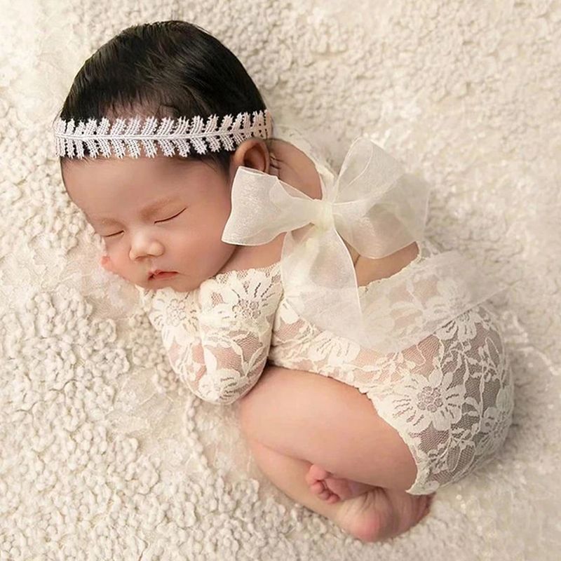 Ylsteed 2 Pieces Set Newborn Lace Romper Infant Photography Outfits with Matching Headband Baby Girl Photo Shooting Props