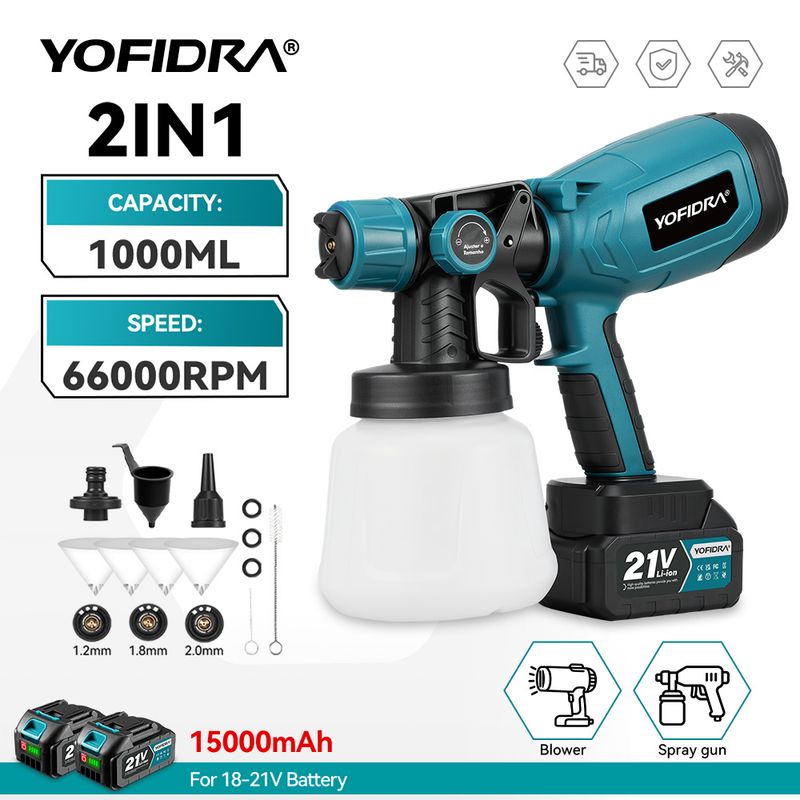 -2 IN 1 Spray Gun: It can provide precise spray patterns to create smooth and high-quality surfaces, and can also be used for blowing dust on electronic devices. One product has two uses and is equipped with a 100ml large capacity container. It will be your best electric spray gun, suitable for fences, decks, ceilings, tables and chairs, interior and exterior walls of houses, and electronic devices