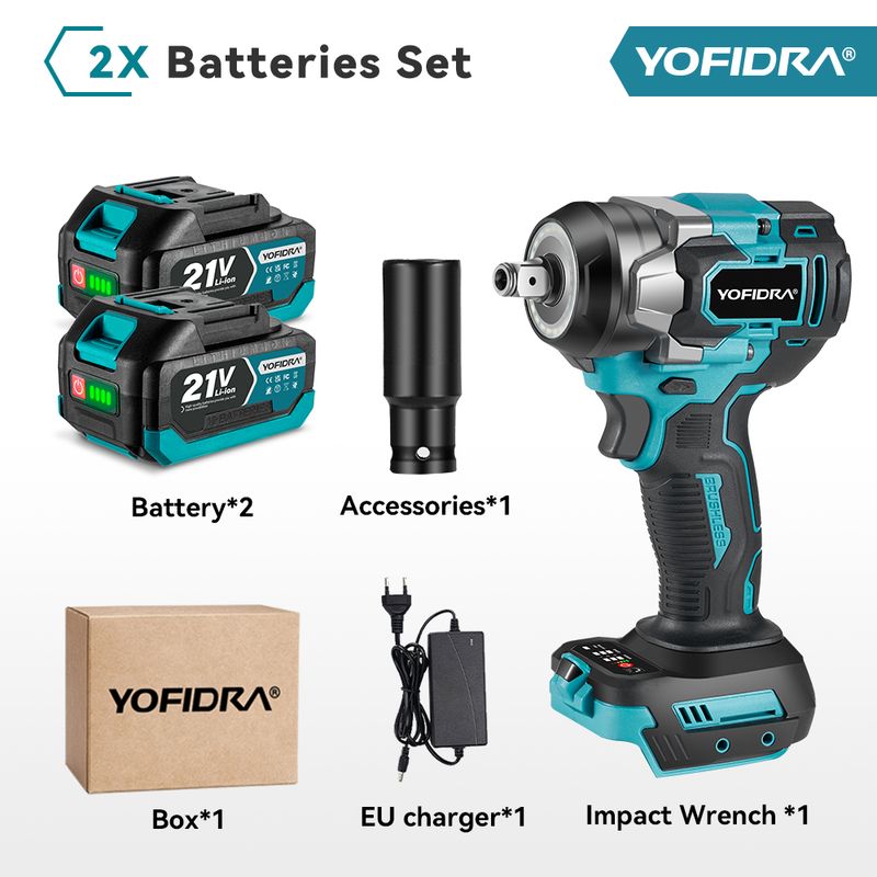 YOFIDRA 1200N.m Brushless Electric Impact Wrench 5 Gears 1/2'' Screwdriver Car Repair Power Tool For Makita 18V Battery Pin