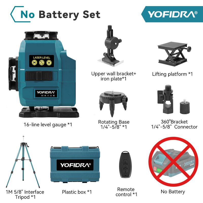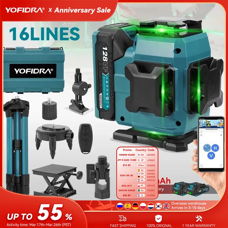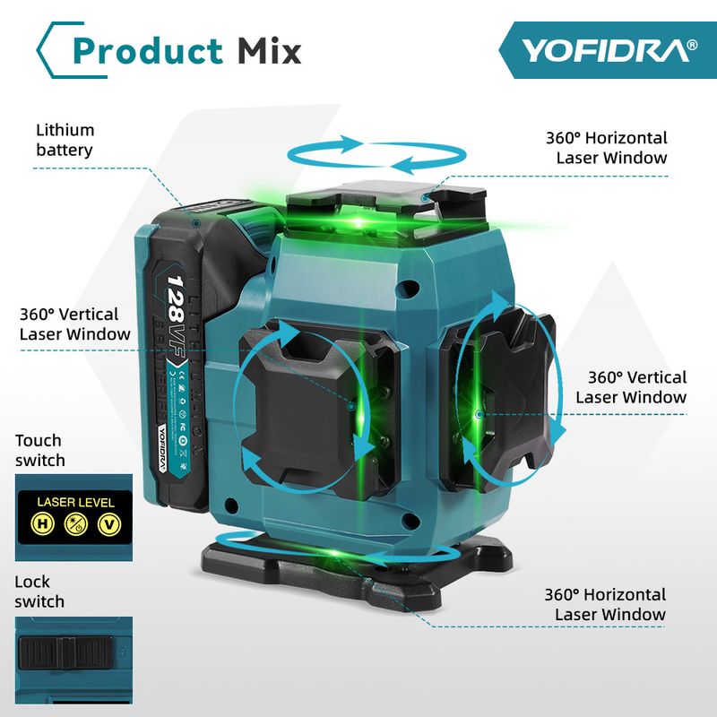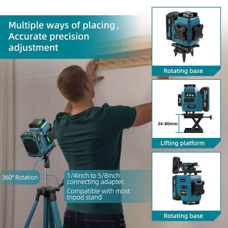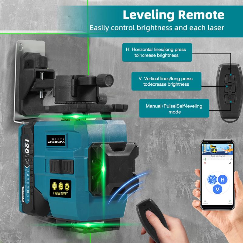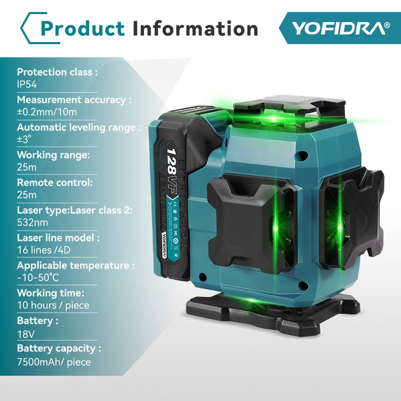 16-Line Green Laser – Delivers high-visibility beams for precise leveling.