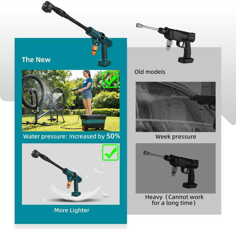 1. Wireless car washing machine, no need to plug in when washing the car, convenient and fast.