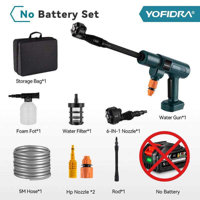 YOFIDRA 200Bar Brushless High Pressure Washer Gun Electric Car Washer Garden Watering Gun Cleaning Tools for Makita Battery Pins