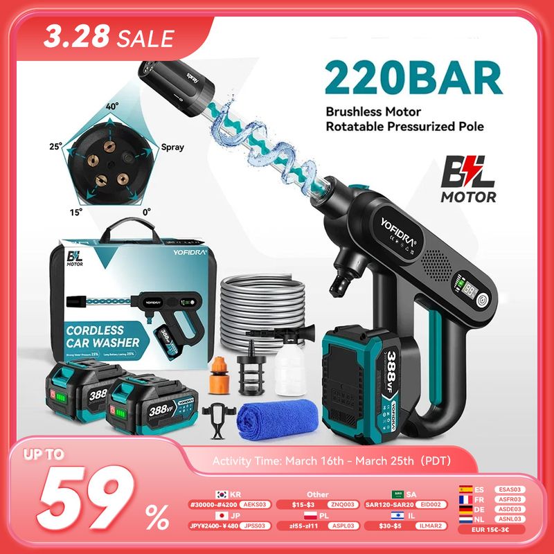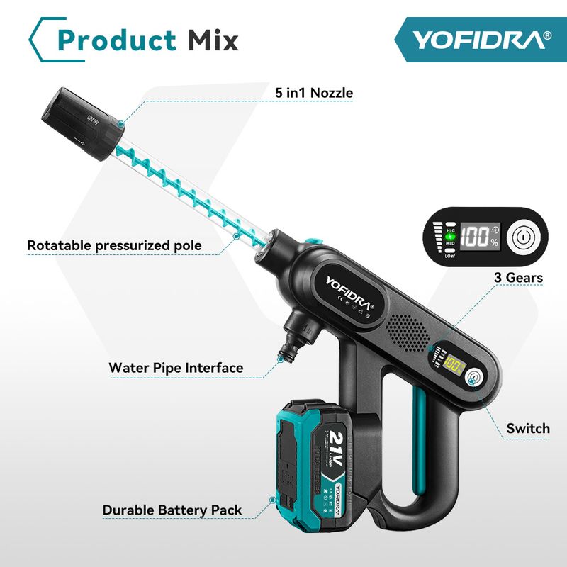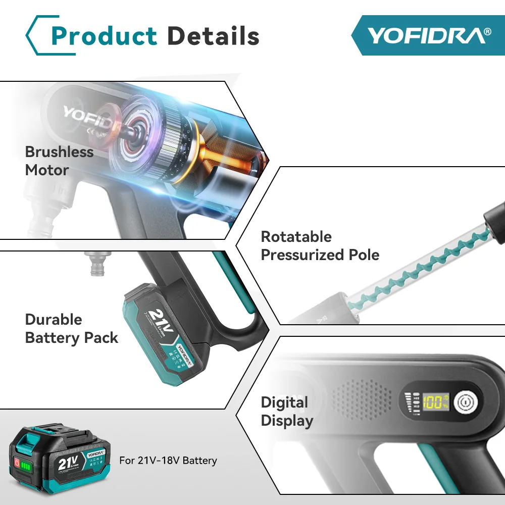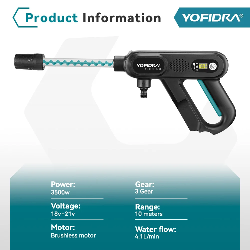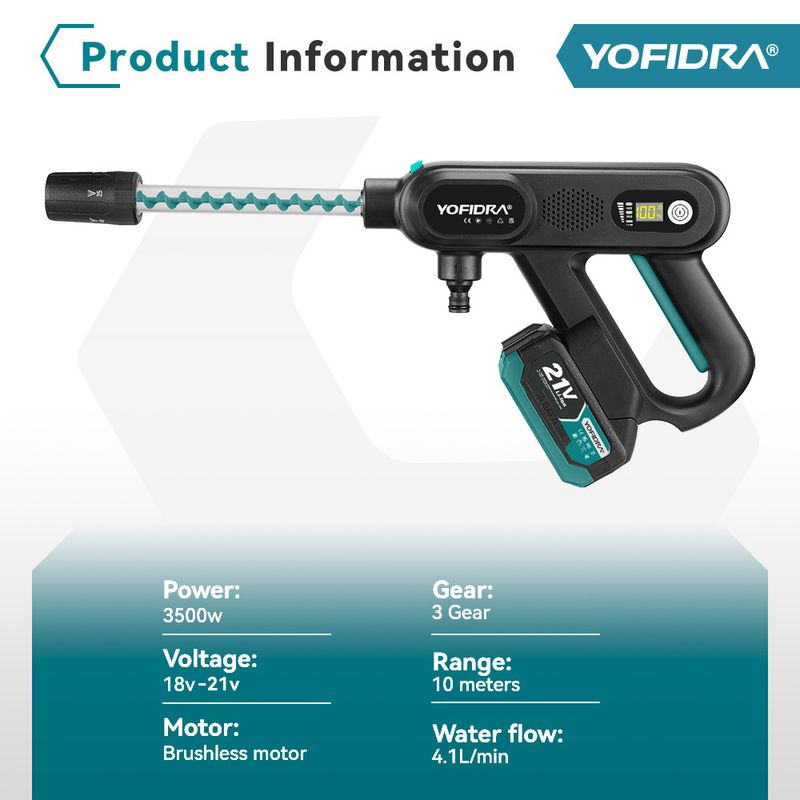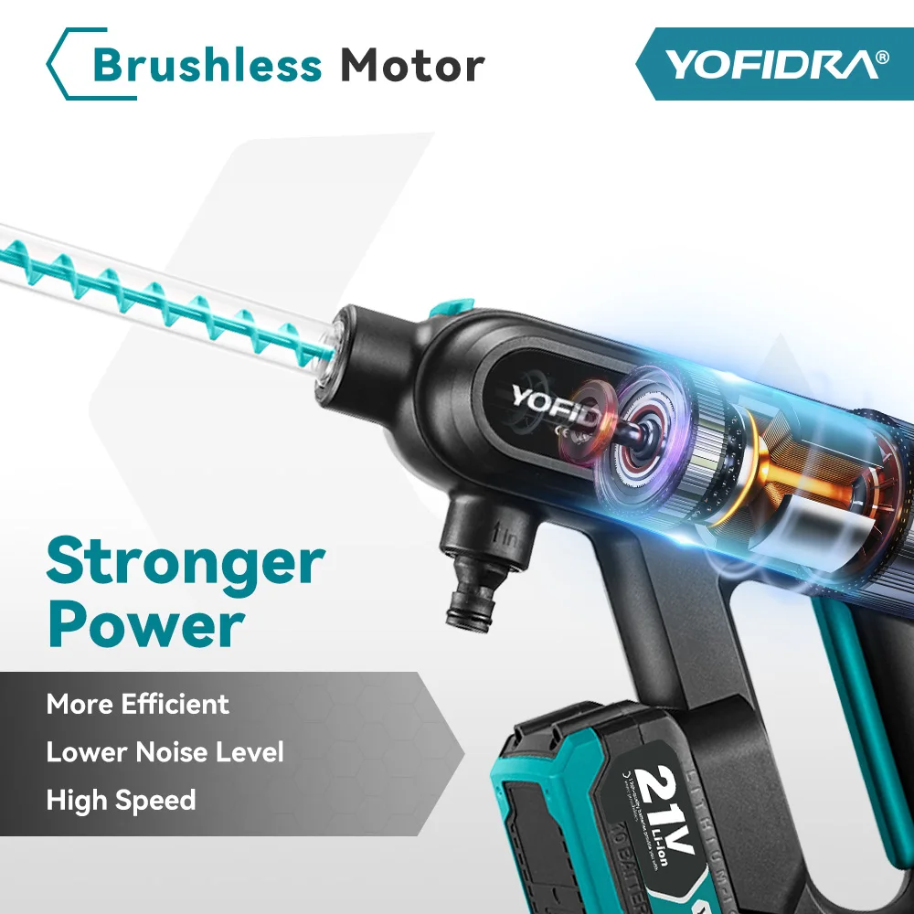 YOFIDRA Brushless High Pressure Car Washer Gun 3 Gear Electric Washing Water Wash Spray Gun Fit For Makita 18V Battery Pin