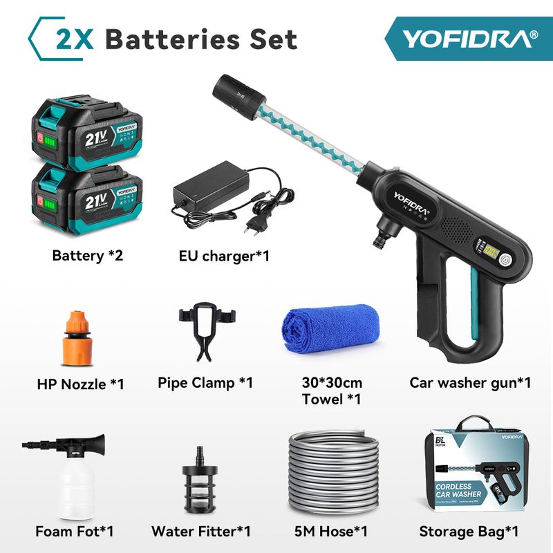 YOFIDRA Brushless High Pressure Car Washer Gun 3 Gear Electric Washing Water Wash Spray Gun Fit For Makita 18V Battery Pin