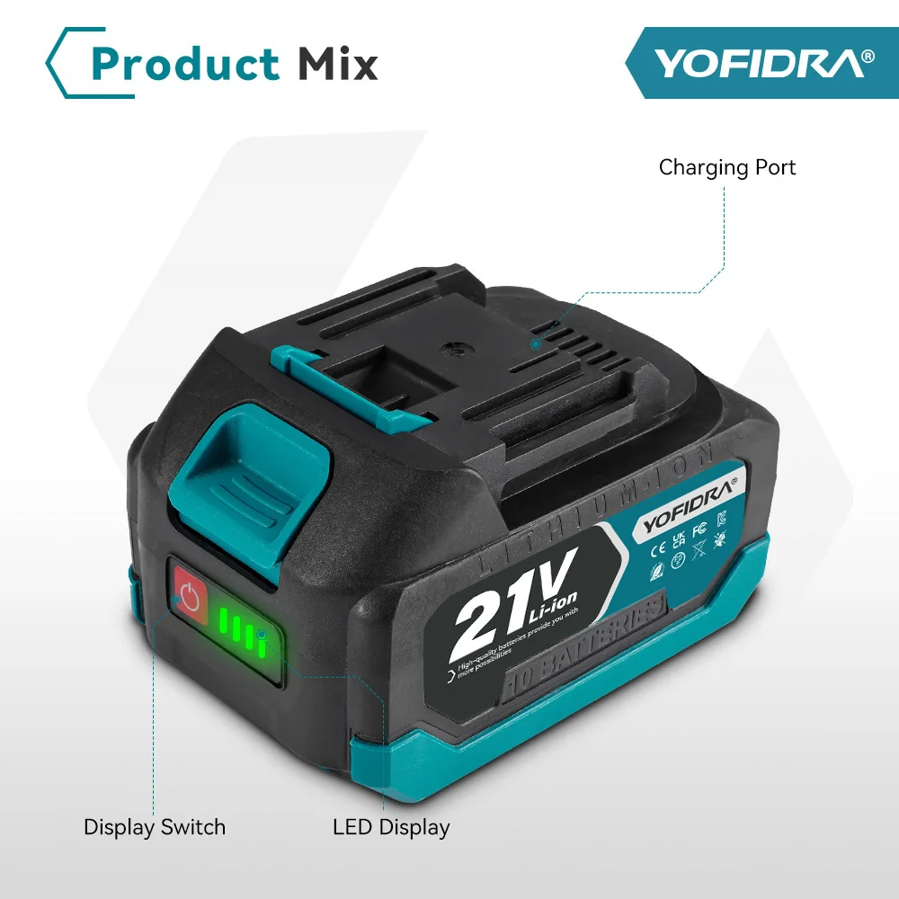 YOFIDRA Rechargeable Lithium Ion Battery 3.0Ah 4.0Ah Lithium Ion Battery Li-ion Battery for Electric Wrench Chainsaw Power Tool