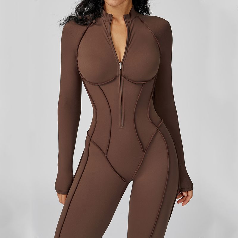 Yoga Bodysuit Long Sleeved Women's Tracksuits Gym Zipper Jumpsuits Sports Workout High-intensity Fitness One-piece Tights Suit