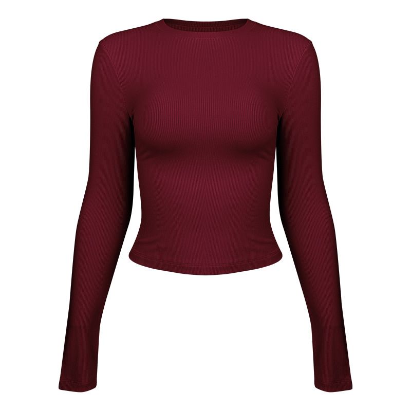 Yoga Women's Sport Long Sleeves Slim Fit Thin Fitness Clothes Wine Red S