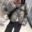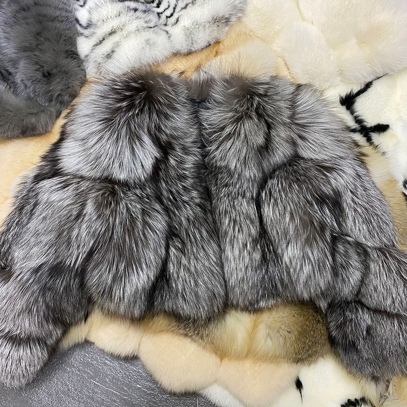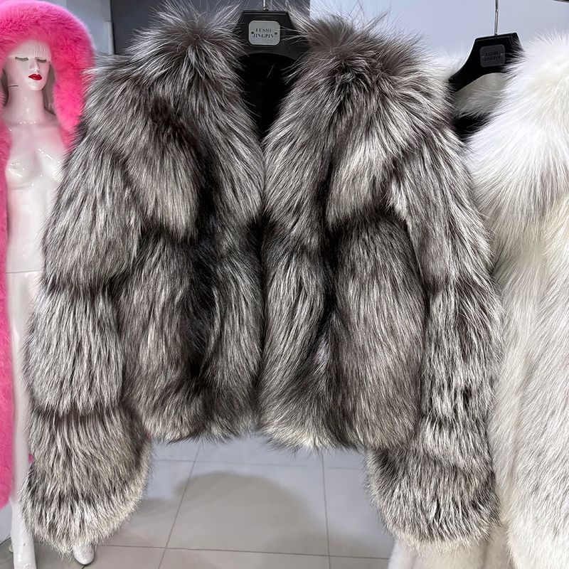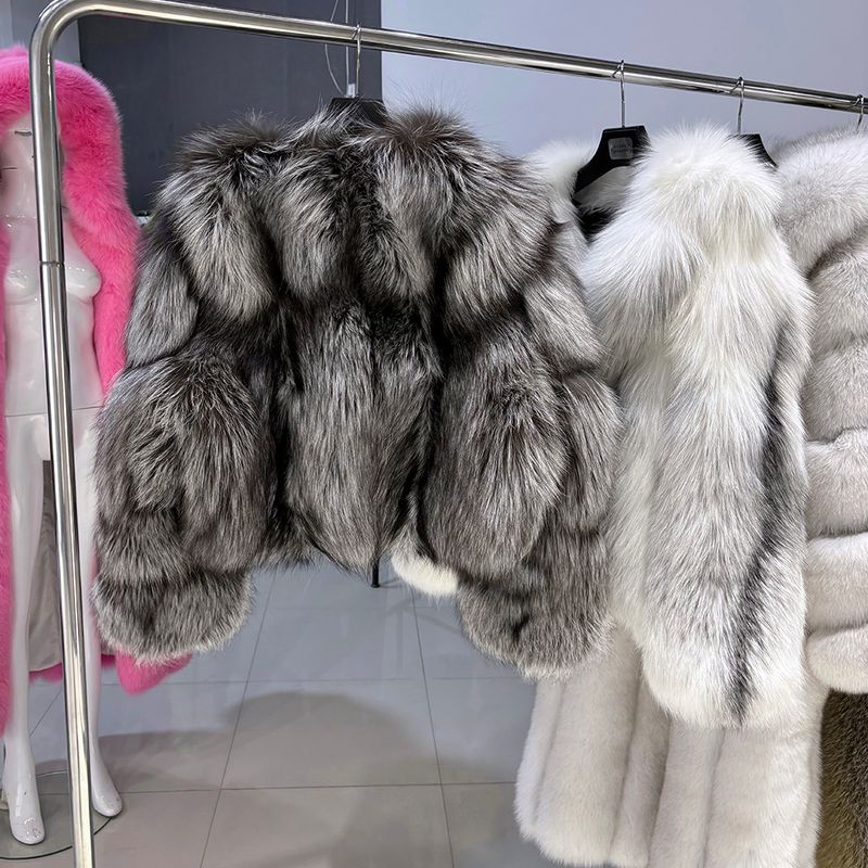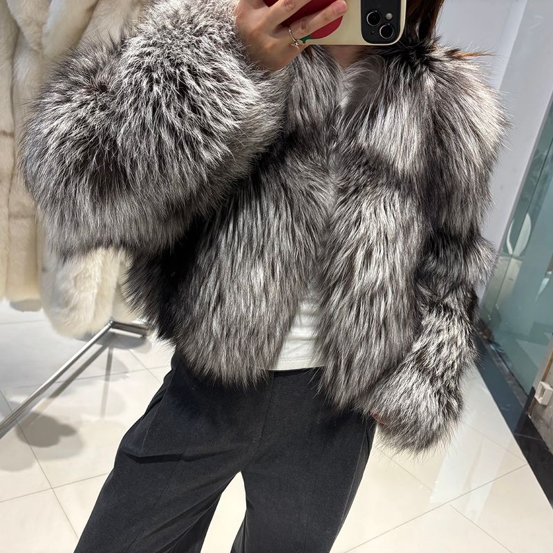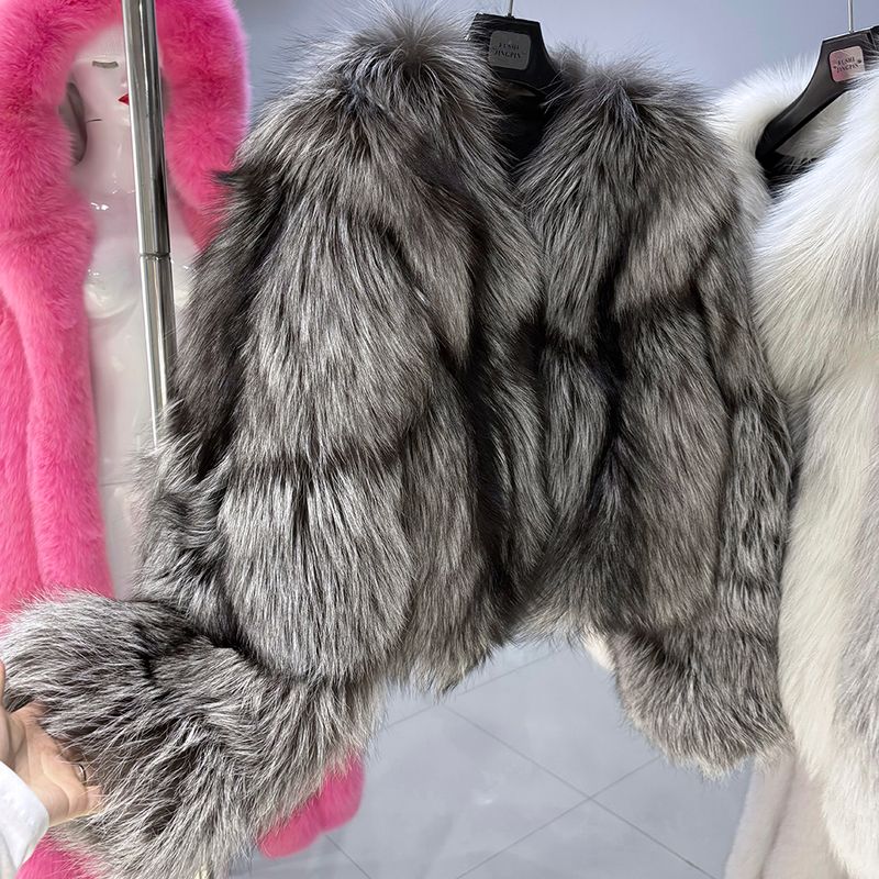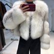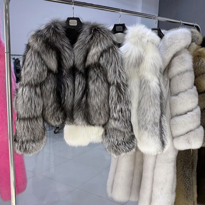 YOLOAgain 2025 Winter Real Fox Fur V-neck Coat Women High Quality Natural Fox Fur Jacket Coat Female