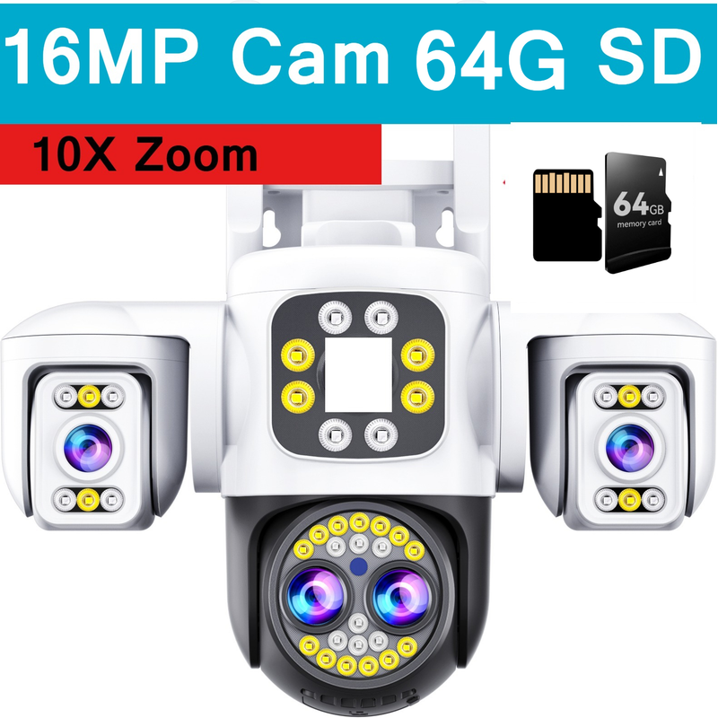 8K 16MP WiFi Camera 10X Zoom Four Len Three Screen CCTV Security Protection Video Surveillance Yoosee Video Surveillance 360°