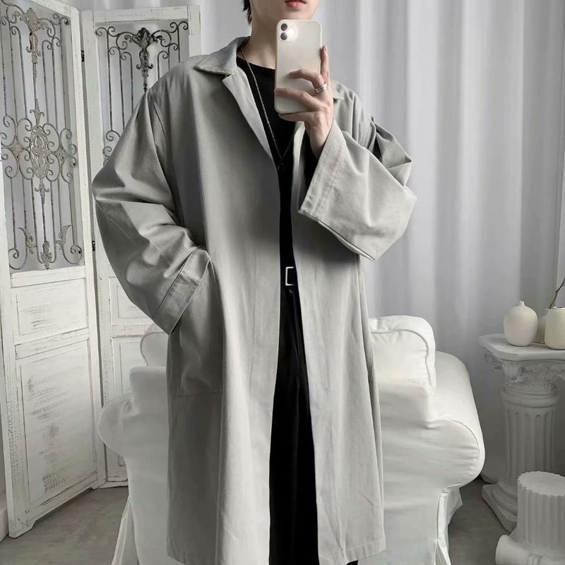 Young Korean Style Loose Long Sleeve Shirt Men Gray 2XL