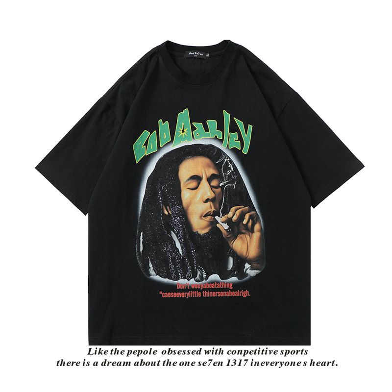 Youth Street Casual Round Neck Half Sleeve Men 5065white XL