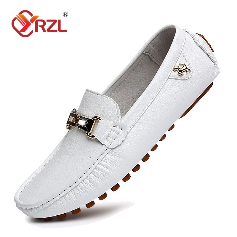 YRZL Shoes Men Handmade PU Leather Loafer Casual Driving Flats Slip-on Shoes Luxury Comfy Moccasins White Loafers Shoes for Men